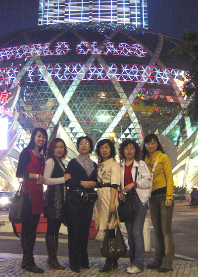 澳門以彩博業的歷史悠久而著稱,入夜,霓虹閃爍、奢華無比,金莎、巴比倫、金龍等娛樂場所比比皆是。欲望在賭場里橫流,賭客不僅僅是青壯年,不乏白發長者。有興趣的團員也小賭了一把,親身體驗了下一國兩制的特色。