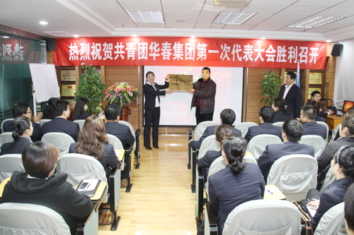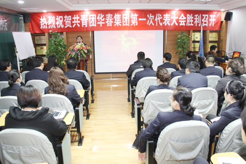 共青團華春集團第一次代表大會于2011年12月3日在恒潤公司培訓室勝利召開,大會由胡梅同志主持,此次會議正式代表、領導及嘉賓共計60余人出席會議,高新區(新市區)團委副書記張新平同志、集團黨委書記嚴天利同志、集團黨委統戰部部長兼機關黨支部書記秦維華同志、華春毛紡黨支部書記郭鵬宏同志、恒潤公司黨支部書記孫業傳同志、華春商貿公司黨支部書記孫佳梅同志、團支部書記李卓軒同志出席大會開閉幕式。