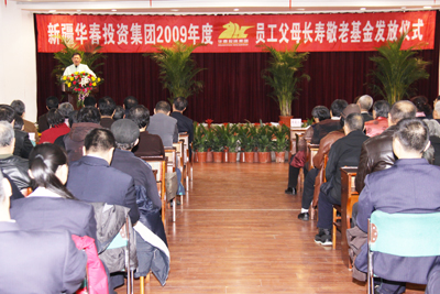 11月25日上午,新疆華春投資集團(tuán)在科學(xué)院質(zhì)量苑賓館舉辦了2009年度員工父母長壽敬老基金的發(fā)放儀式。首次發(fā)放長壽敬老基金22萬多元,近百位華春員工的父母一個(gè)個(gè)手捧著裝有長壽敬老基金的紅包,滿臉洋溢著幸福和喜悅。
