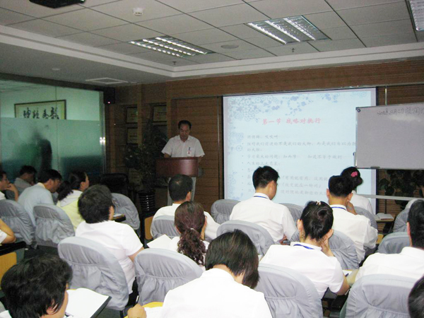 公司張樹偉副總經(jīng)理在培訓課堂上,就恒潤公司團隊如何提升執(zhí)行力,從戰(zhàn)略與執(zhí)行的角度進行闡述,深層次分析了企業(yè)團隊中執(zhí)行不力的原因;企業(yè)團隊中領(lǐng)導(dǎo)人的表率與榜樣作用;員工的心態(tài)及企業(yè)與員工之間的依存關(guān)系;企業(yè)規(guī)章制度在推行的關(guān)鍵環(huán)節(jié)中的要點;企業(yè)文化的種種現(xiàn)象等。