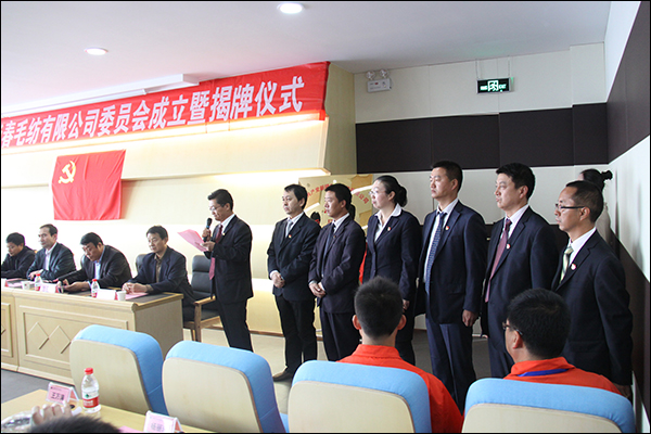 五家渠市黨委組織部常務(wù)副部長,人事局局長張寶林同志宣讀了華春毛紡黨委成立及黨委成員任命的文件。五家渠市黨委常委、副市長李金平同志和自治區(qū)政協(xié)常委、華春投資集團董事局主席兼總裁李成功先生為華春毛紡黨委成立揭牌,并先后講了話。
