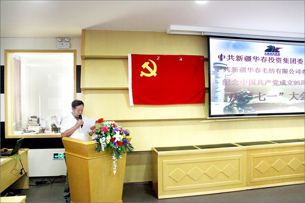 為慶祝中國共產黨建黨95周年,迎接“七一”黨的生日,6月28日,集團黨委與華春毛紡黨委慶“七一”黨員大會在華春毛紡AAA級旅游工業園舉行,60多名來自華春各條戰線的共產黨員和入黨積極分子的代表參會。