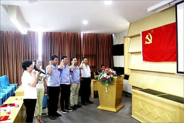 黨委委員王新平同志宣讀了《關于對優秀共產黨員、優秀黨務工作者的表彰決定》,11位優秀共產黨員和優秀黨務工作者受到表彰;集團黨委副書記陳遵義同志宣讀了《關于對預備黨員的審批決定》,由黨委委員胡梅同志領誓,6名新黨員莊嚴宣誓,張文輝代表新黨員發表了感言。