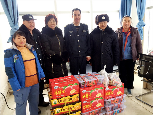 高青一行先后來到能源動力部、保安部、職工食堂、員工宿舍等,為值班員工送去多種水果等節日慰問品,代表公司感謝員工一年來的辛勤工作,并在重大節日期間堅守在崗位。鼓勵員工在新的一年,聞雞起舞,為企業的發展、竭盡全力,新的征程上努力奮斗、夢想成真。