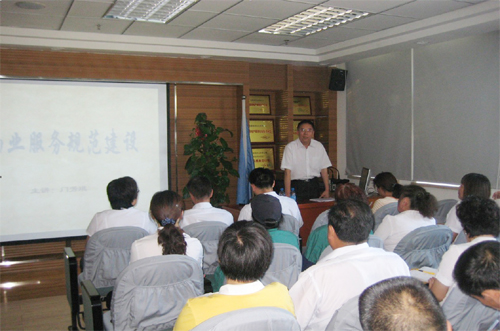 2010年6月28日下午,華景物業公司特邀物業專家門芳琪先生,對物業公司各級管理人員進行了物業服務規范建設和物業小區案例分析的培訓。目的是為了規范物業服務與管理,學習優秀小區的方法與經驗,建立嚴、細、精物業服務工作標準。通過小區案例分析的培訓,明晰小區切實存在問題的責權劃分以及法律法規的內容。