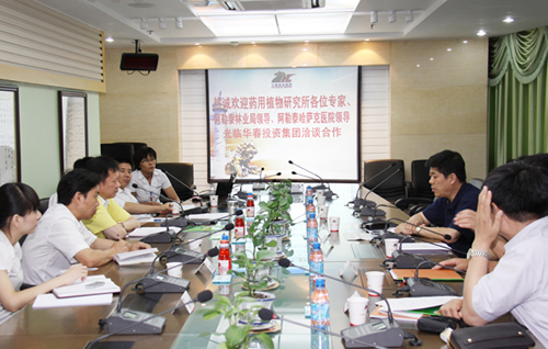 在中央對口大力支持發展新疆政策背景下,結合新疆豐富的藥業資源背景,利用國內一流醫藥科研機構研發優勢、華春投資集團自主運作優勢,共謀“新疆藥用植物及民族藥開發與產業化”大計,設計以市場需求為導向、科技技術作為支撐、政府參與為主導、企業為龍頭、新疆地方資源配套、民族藥開發為題材、經濟、社會效益為核心的,符合自治區和國家十二五醫藥規劃的實施方案,達成了合作意向,并簽訂了相關協議文件等。