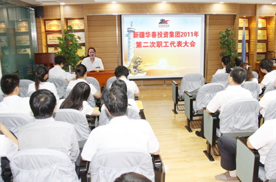 新疆華春投資集團(tuán)有限公司2011年第二次職工代表大會(huì)于7月30日上午在新疆華春投資集團(tuán)子公司新疆恒潤(rùn)實(shí)業(yè)有限公司培訓(xùn)室召開(kāi),會(huì)議由高青同志主持。參加會(huì)議的應(yīng)到職工代表51人,實(shí)到職工代表 49人。