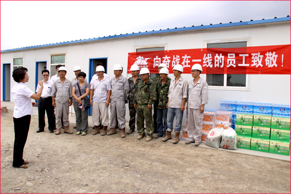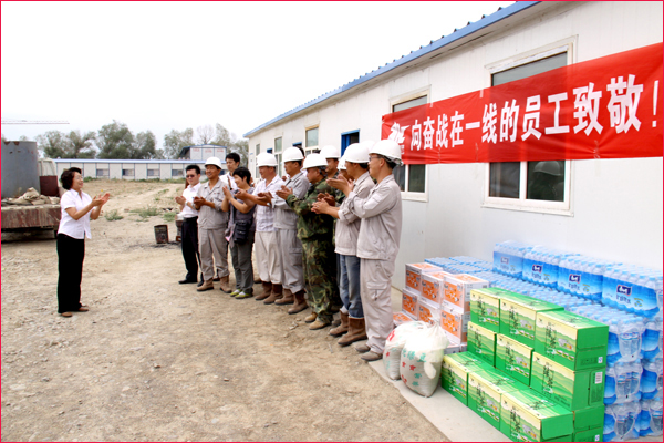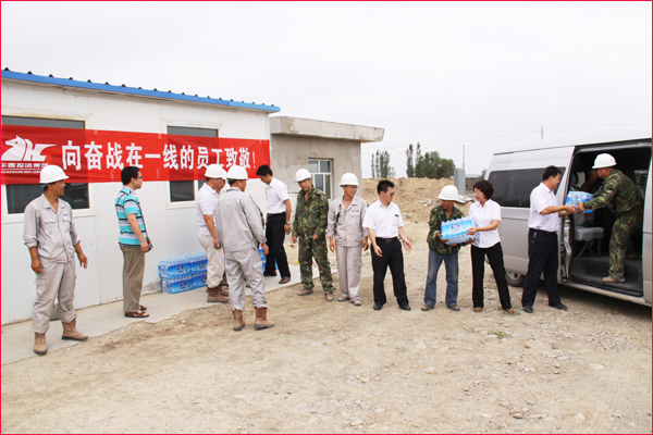 6月30日,新疆華春投資集團工會主席高青和行政辦副主任鄭培君、華春集團子公司新疆恒潤實業(yè)有限公司辦公室主任及集團編輯部全員一行,將一箱箱的統(tǒng)一綠茶和茉莉蜜茶、一件件的純凈水及綠豆、冰糖、白糖等降溫防暑飲料與物品,送給奮戰(zhàn)在五家渠華春毛紡工業(yè)園項目建設(shè)工地的一線員工,同時也送去了李成功總裁和華春全員的關(guān)愛之心。一線員工們接到公司送來的慰問品,深深感受到公司的關(guān)懷,“感謝李總裁對我們的關(guān)心!謝謝公司對我們的慰問看望!”