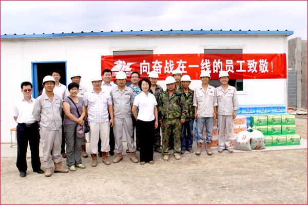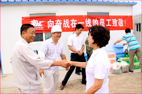 關(guān)愛員工,是華春企業(yè)文化的精髓。入夏天氣持續(xù)高溫,炎熱異常,但五家渠華春毛紡工業(yè)園項目建設(shè)工地的員工們,頂烈日、戰(zhàn)酷暑,堅守在崗位。華春集團心系一線員工,自6月下旬以來,集團行政辦與有關(guān)子公司管理層都前去慰問。中國關(guān)愛員工優(yōu)秀民營企業(yè)家李成功總裁,還特地于端午節(jié)親臨工地現(xiàn)場,親切看望慰問了員工與施工單位的工作人員。華春集團與總裁李成功先生的關(guān)心,極大的鼓舞著一線員工的工作熱情,大家決心要以實際行動發(fā)揚工人階級頑強拼搏的精神,有序推進工程建設(shè),為華春毛紡工業(yè)園項目早日建成做出貢獻。